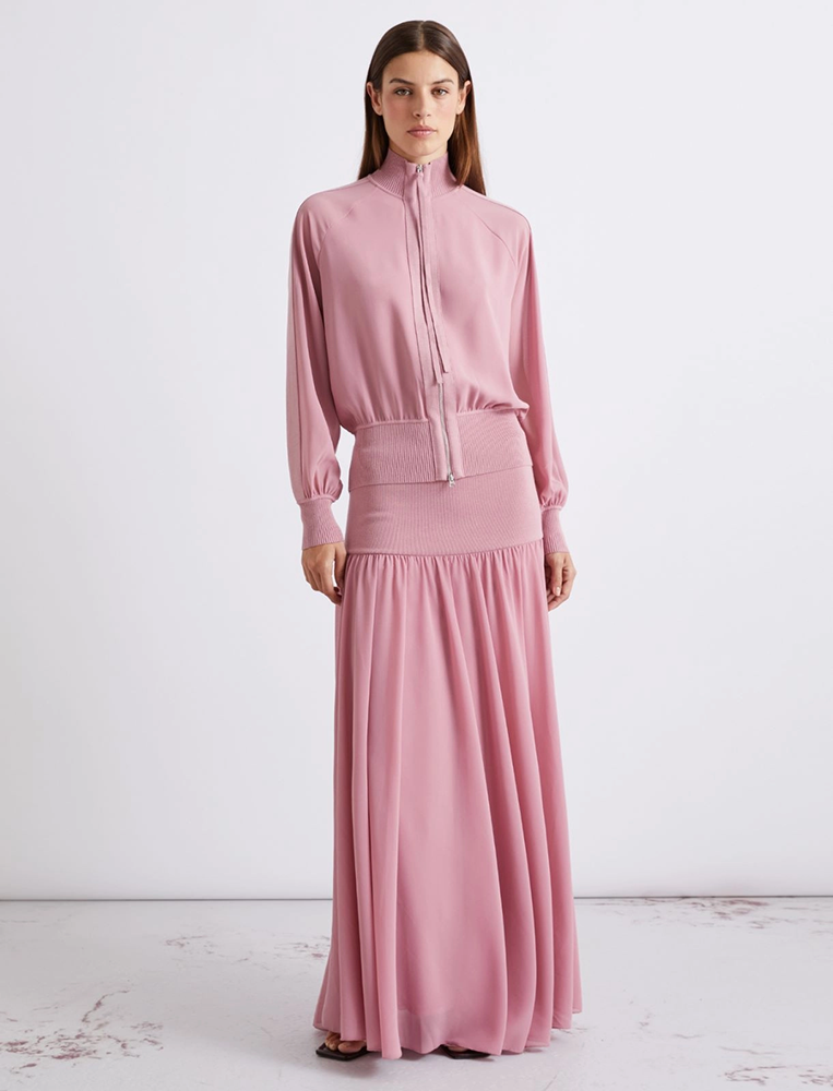 Фундаментом этой новой оптики становятся контрасты. Контрасты не только визуальные, но и философские. Легкие, почти невесомые ткани соседствуют с кожаными деталями, гипертрофированные объемы — с точными, облегающими силуэтами, а ностальгические отсылки к нулевым и семидесятым получают радикально современную трактовку.
