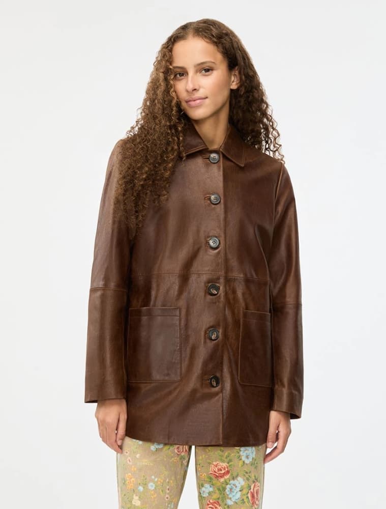 Дизайнеры предлагают кожаные платья-рубашки, расклешенные миди-юбки, воздушные топы и даже объемные блейзеры. Цветовая гамма выходит за рамки классического черного: в фаворе белый, карамельный, насыщенный шоколадный и пастельные оттенки. Кожа весной и летом — это символ роскоши, которая ценит не показной блеск, а безупречную фактуру и мастерство.