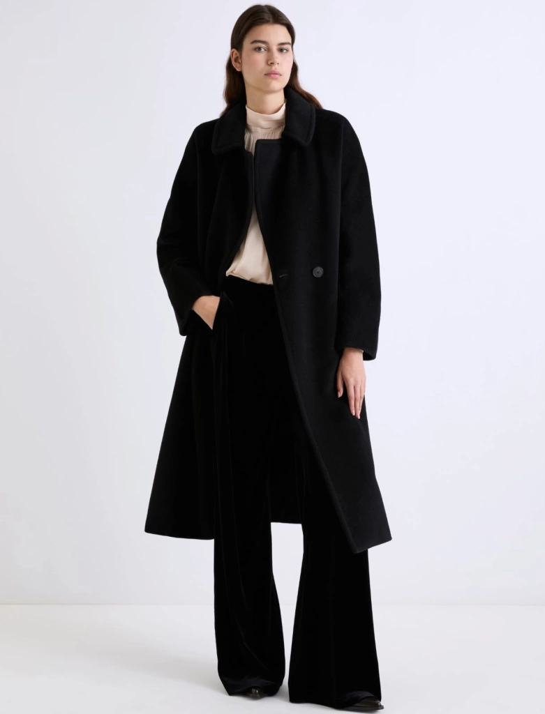 Классическое темное пальто (черное, серое, темно-синее) — универсальный вариант. Не бойтесь ярких акцентов: например, белое или кремовое пальто станет шикарной рамкой для тёмного наряда.