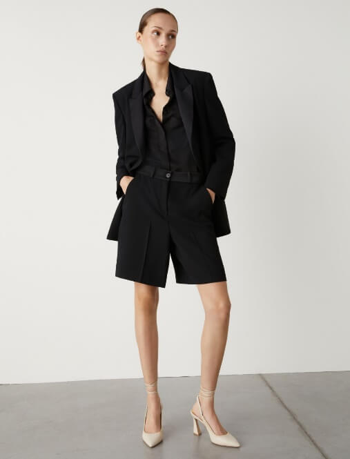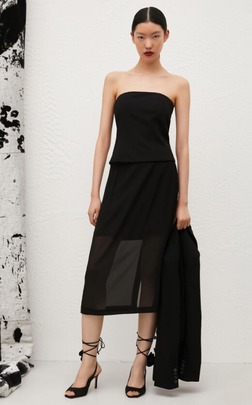 Не забывайте и о таких универсальных вещах, как баска с юбкой или платьем. Сочетание этих элементов в стиле тотал блэк поможет подчеркнуть достоинства фигуры и создать элегантный образ.