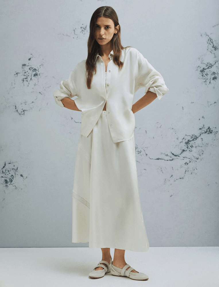 Вискоза (и ее современные виды — лиоцелл, тенсел) ценится за идеальную драпируемость и комфорт в повседневной носке. Высококачественный хлопок с добавлением эластана обеспечивает структуру и формоустойчивость, оставаясь приятным к телу. Объединяет эти материалы ощущение легкости и естественности — они словно становятся продолжением тела.