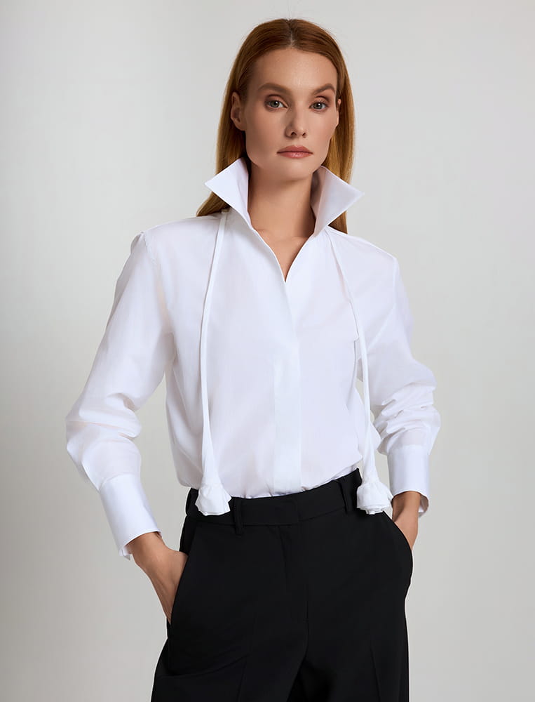 Параллельно развивается культура комфорта. Даже самые сложные, конструктивные модели дизайнеры умудряются делать удобными для ежедневной носки. Блузы не сковывают движения и органично вписываются в быстрый темп мегаполиса, оставаясь комфортными с утра до вечера.