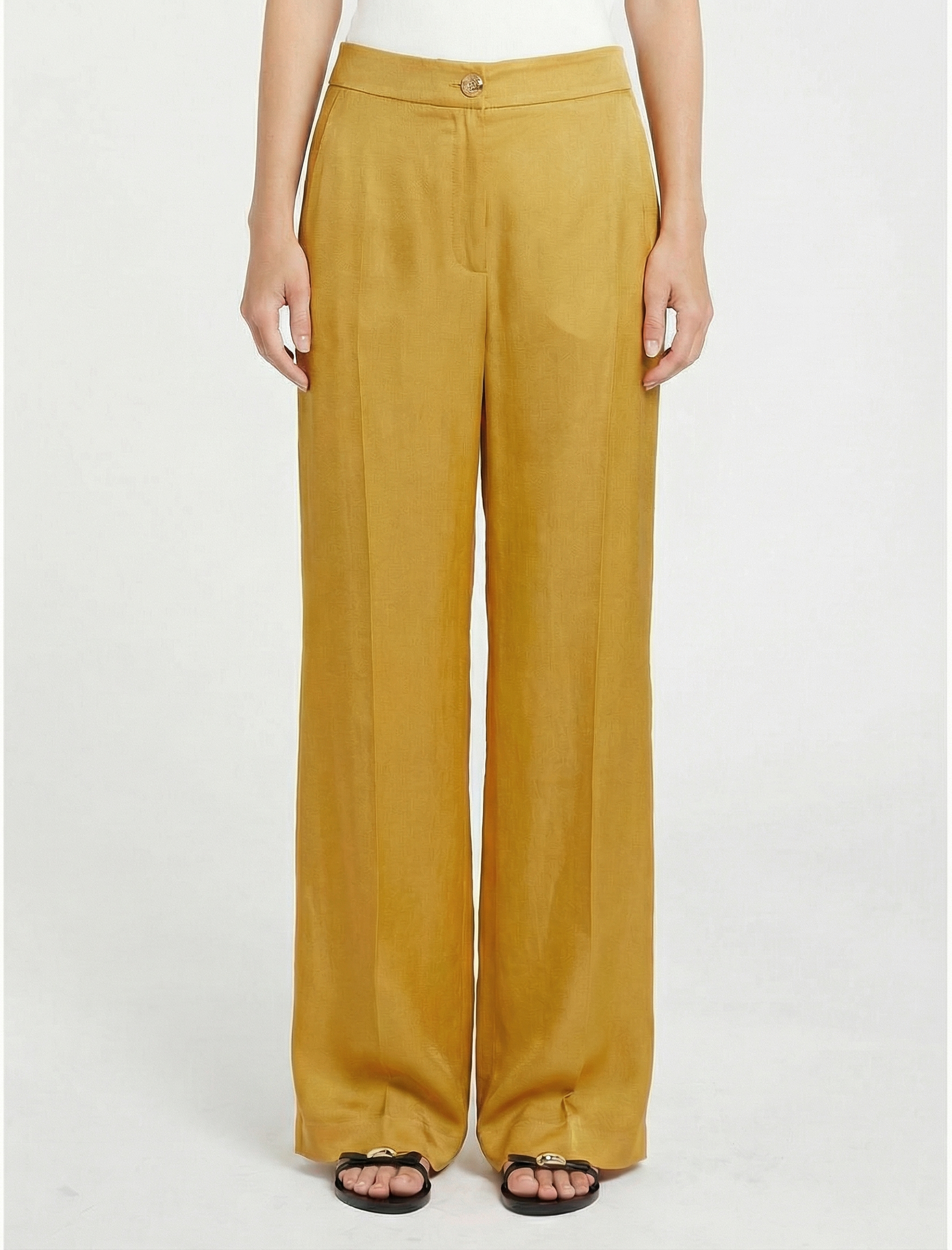 Брюки с эластичным поясом из вискозы и льна, цвет Желтый