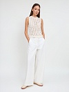 Представляем вам идеальное сочетание комфорта и современного стиля с этими  широкими брюками. Изготовленные из дышащего хлопка, они обеспечивают свободу движений и комфорт в течение всего дня. Практичные наклонные карманы добавляют функциональности, а стильный тканый пояс с элегантной металлической пряжкой позволяет регулировать посадку и придает образу завершенность.