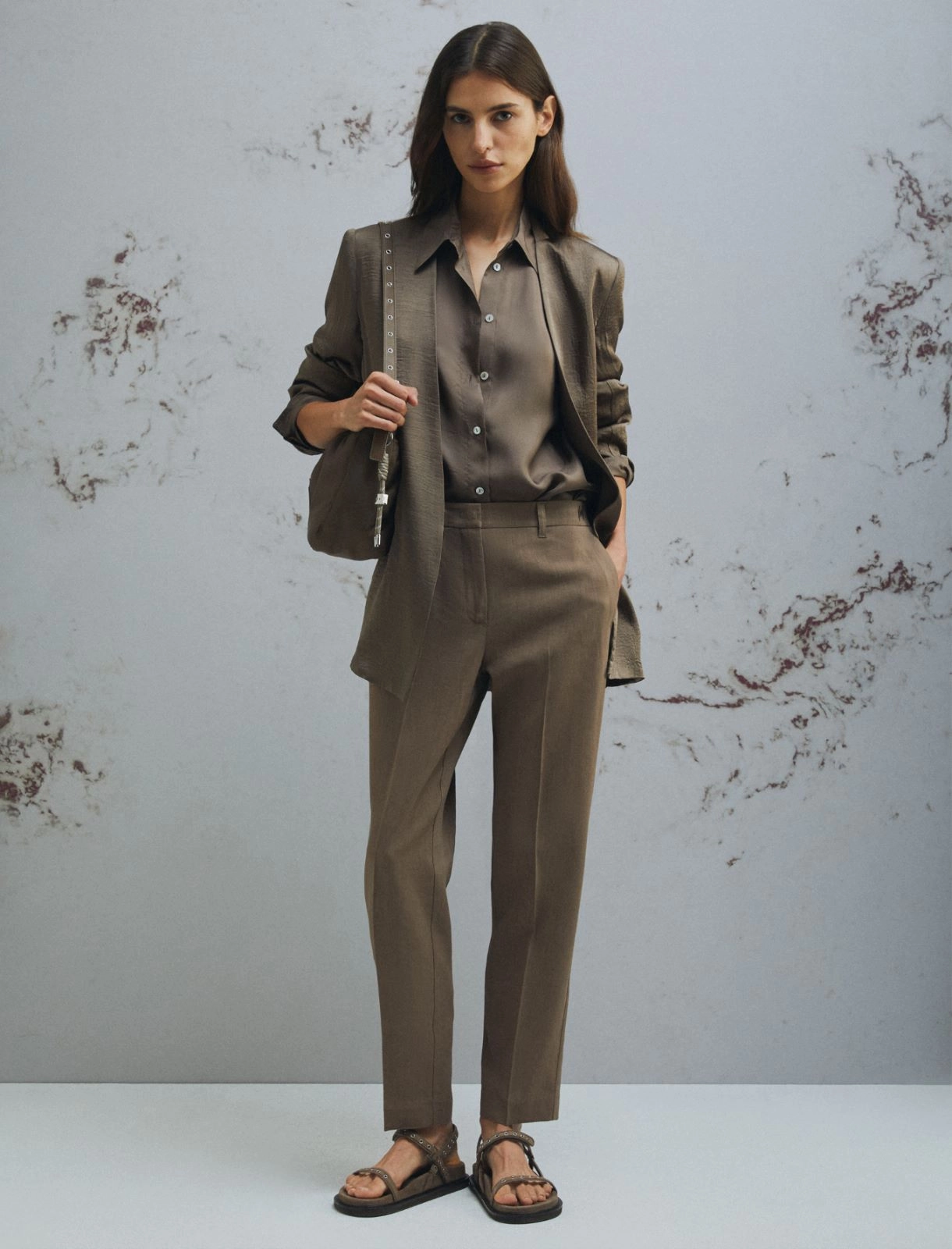 Зауженные брюки из вискозы и льна