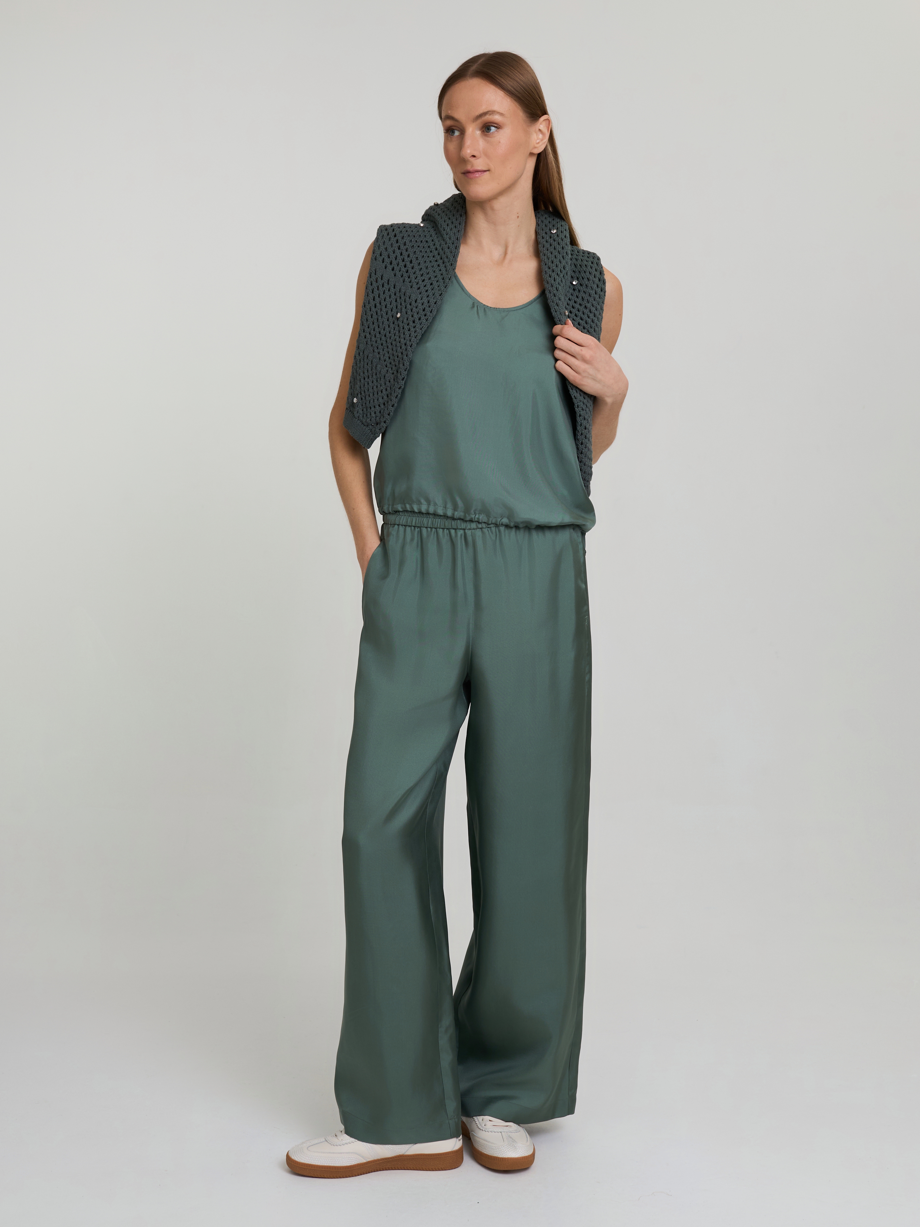 Брюки с эластичным поясом из 100% шелка, цвет Зеленый
