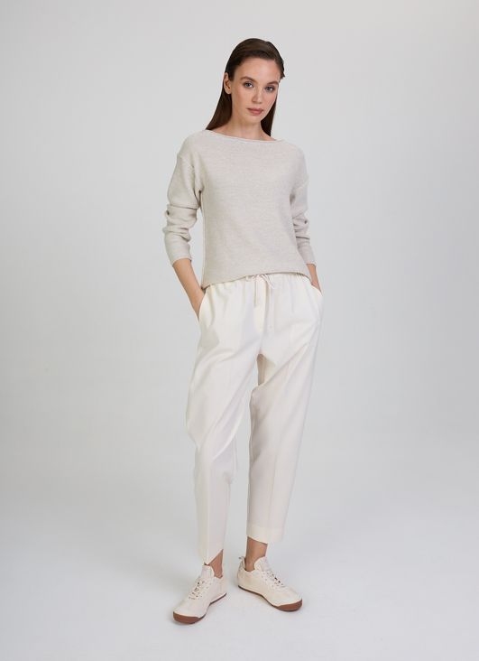 Зауженные брюки с кулиской на талии, цвет Белый