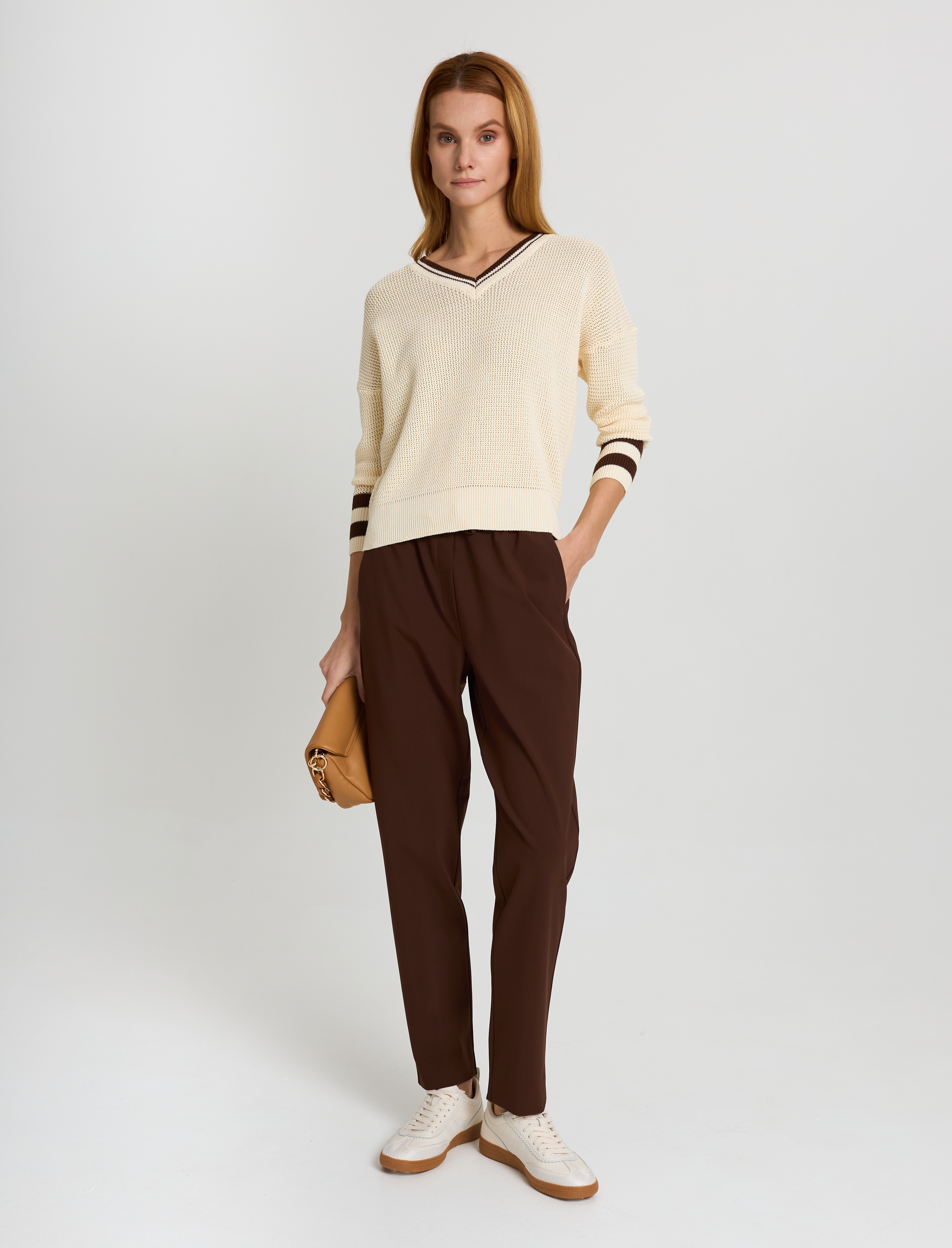 Эти брюки идеально подойдут для тех, кто ценит комфорт и стиль. Универсальный крой джоггеры с регулируемой кулиской на талии гарантируют идеальную посадку и удобство в течение всего дня. Наклонные карманы визуально незаметны и не перегружают лаконичный крой.