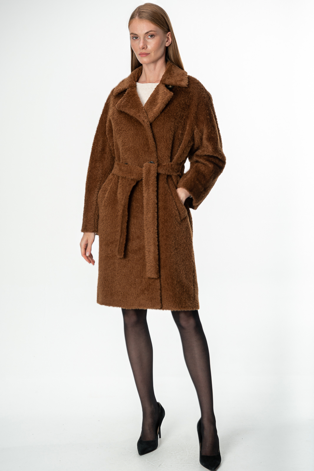 Пальто из шерсти и альпаки с поясом, цвет Коричневый