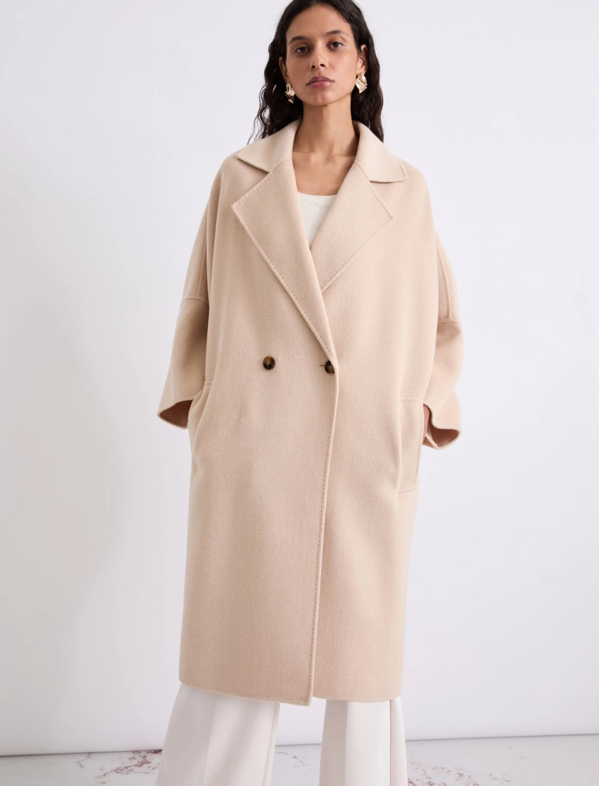 Пальто из двухсторонней шерстяной ткани, цвет Бежевый