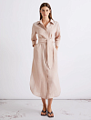 Платье-рубашка с поясом из 100% льна, цвет Розовый
