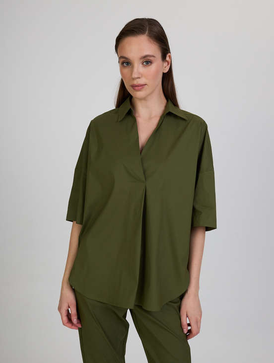 Блуза свободного кроя из хлопкового поплина, цвет Хаки