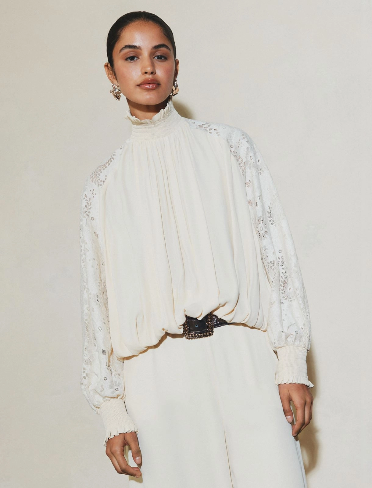 Блуза из жоржета с итальянским кружевом, цвет Белый
