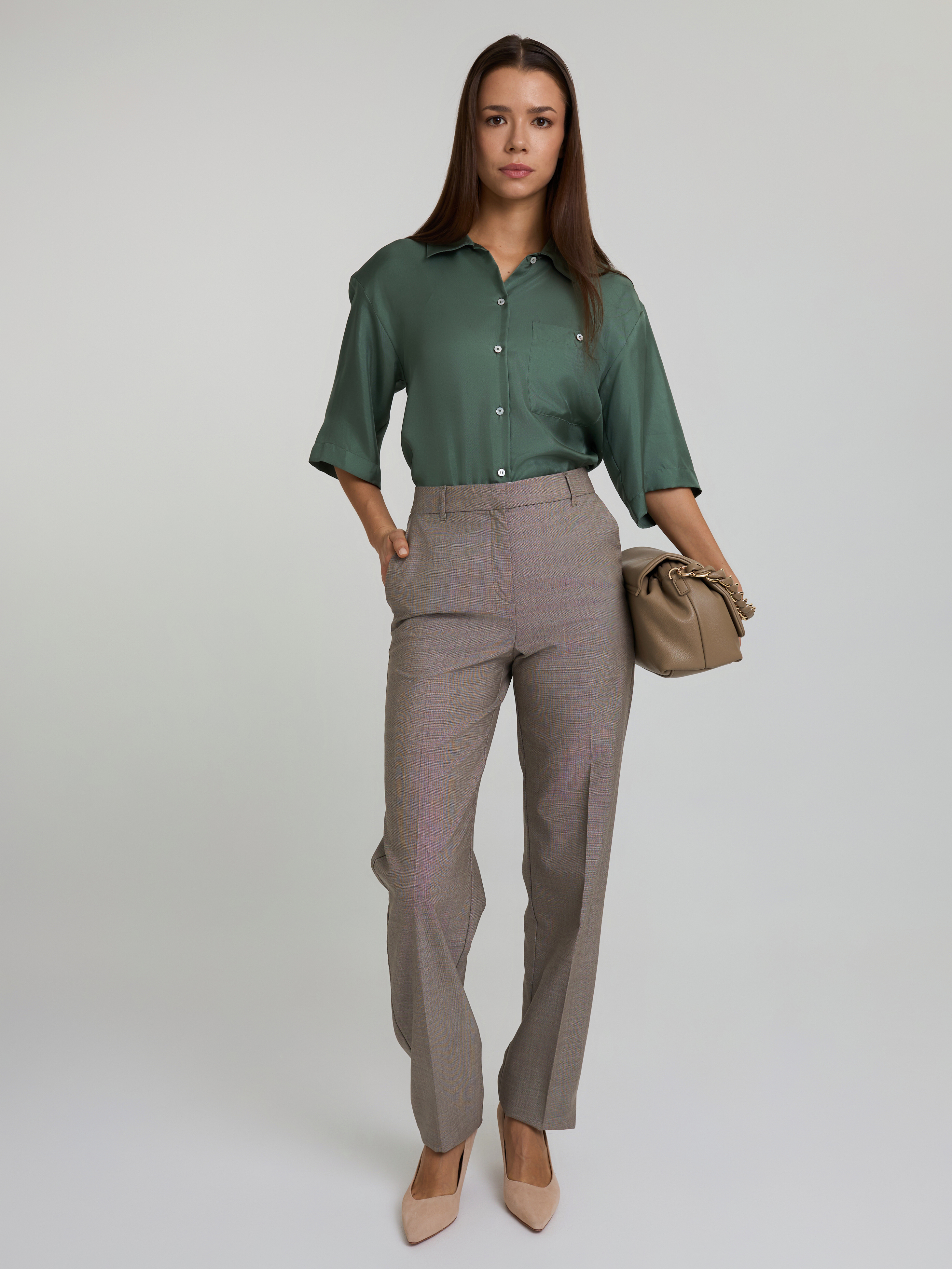 Блуза-рубашка из 100% шелка, цвет Зеленый