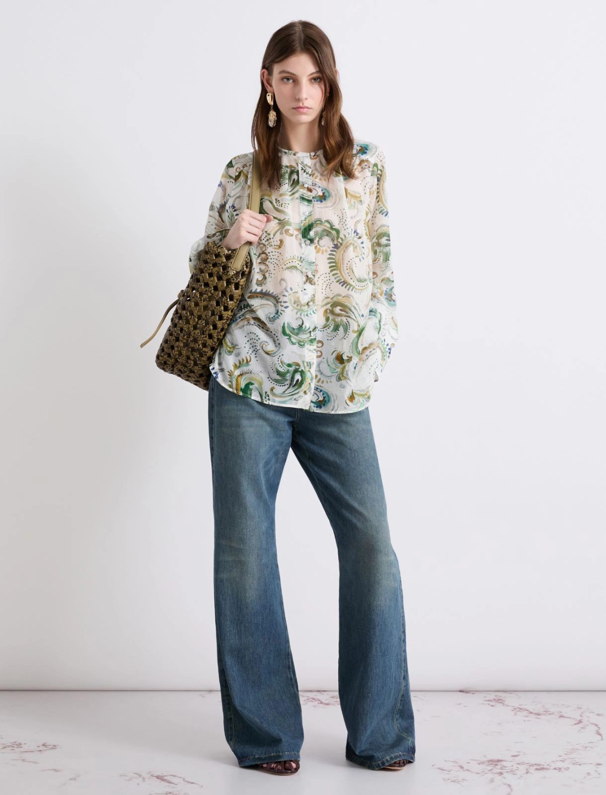 Блуза свободного кроя из хлопка и шелка, цвет Зеленый