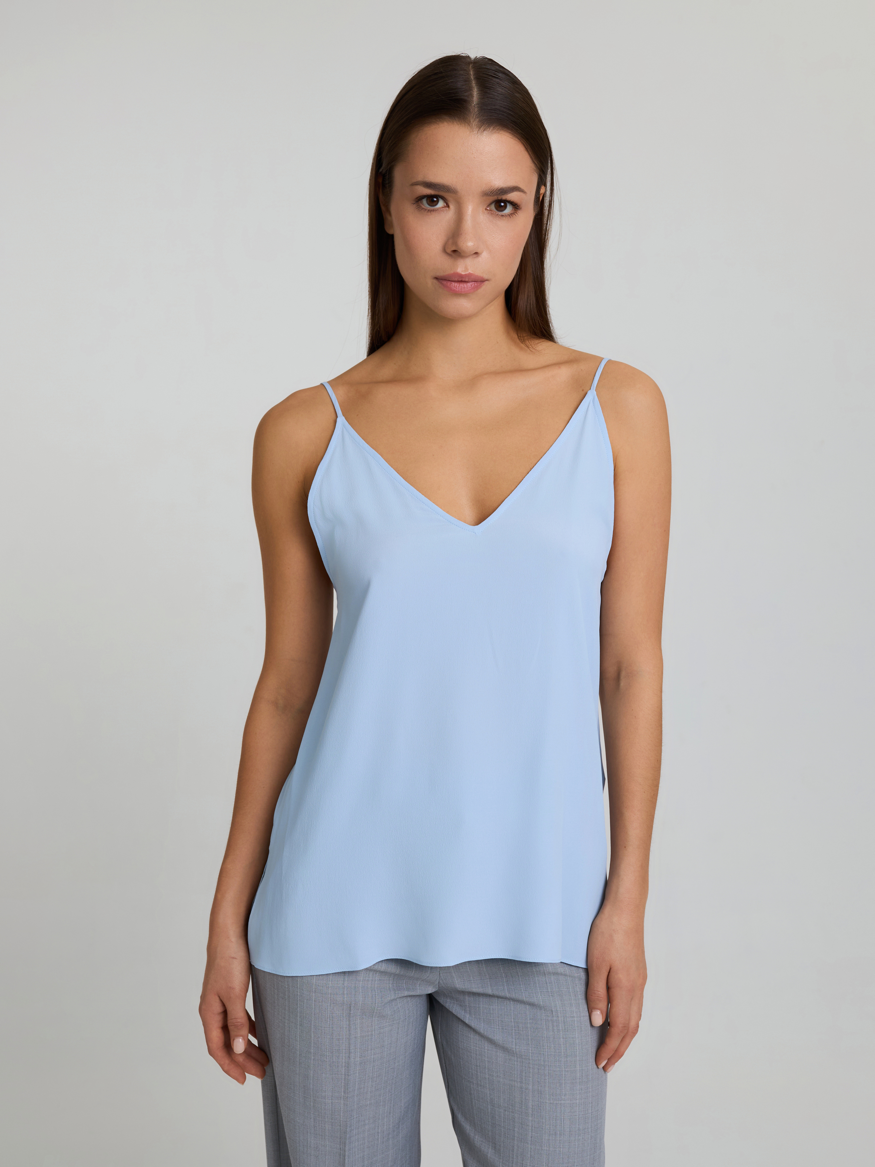 Топ из шелковой ткани на тонких бретелях, цвет Голубой