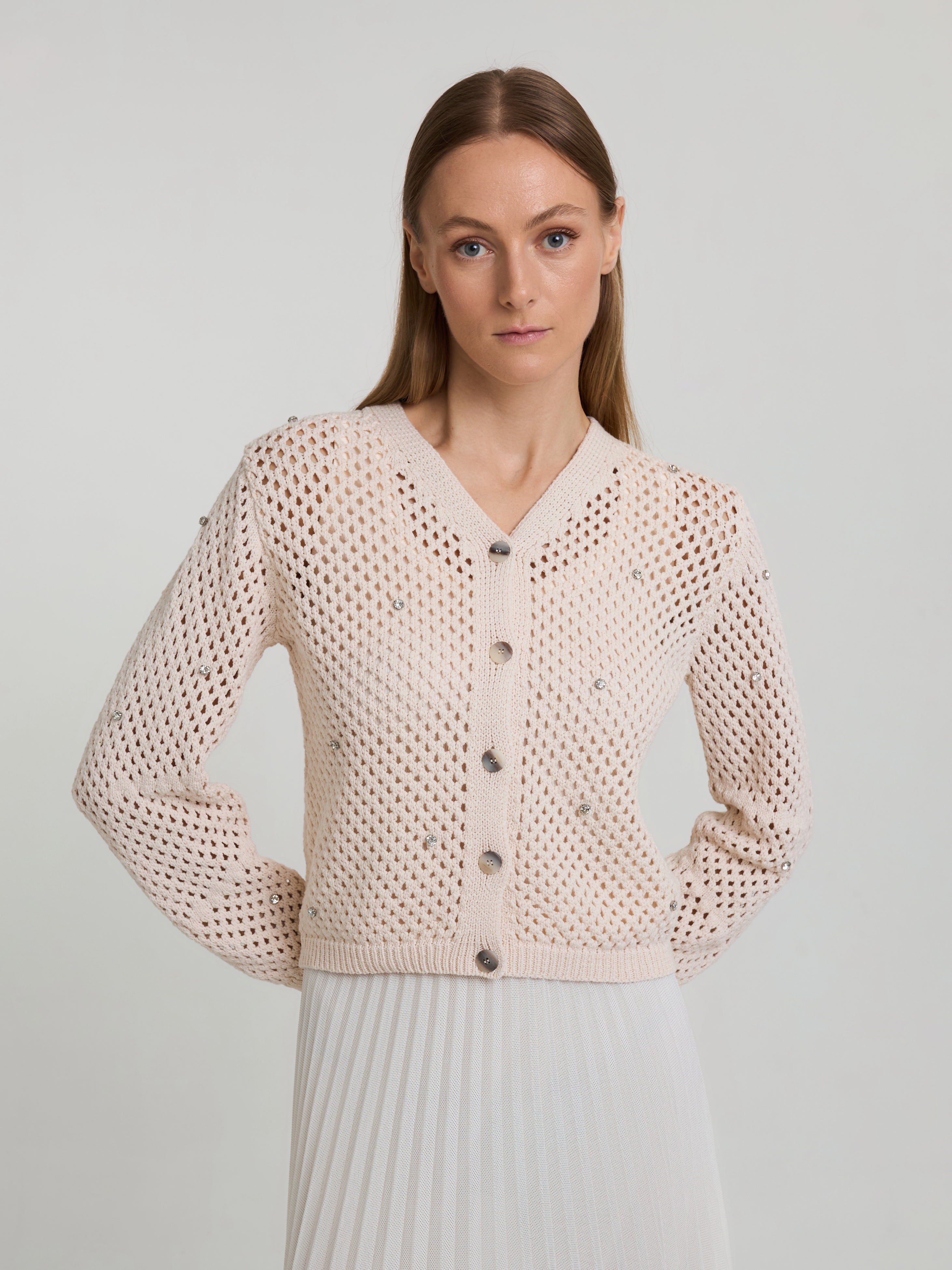 Ажурный кардиган с вышивкой из кристаллов, цвет Белый