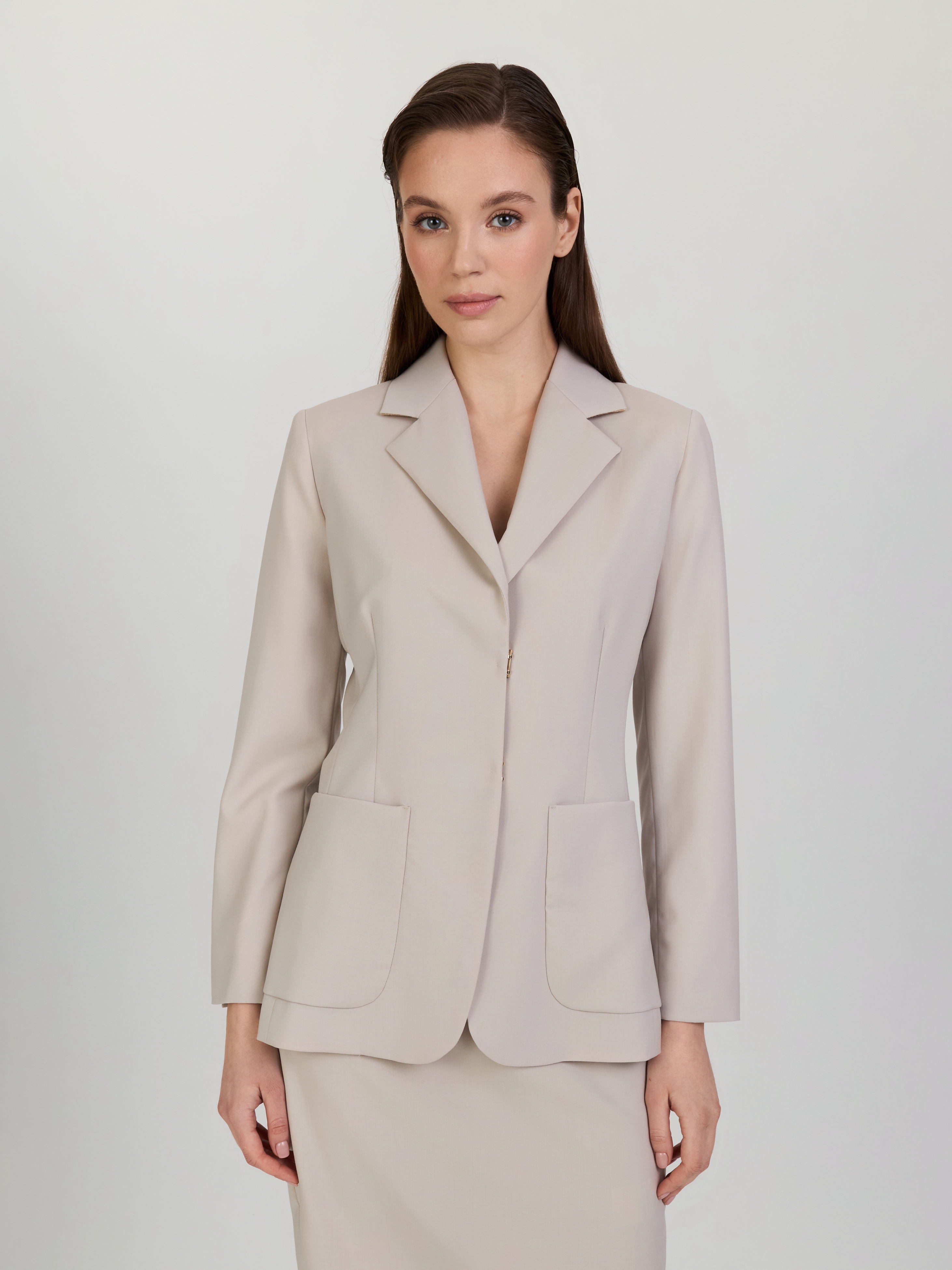 Однобортный жакет из 100% шерсти, цвет Кремовый