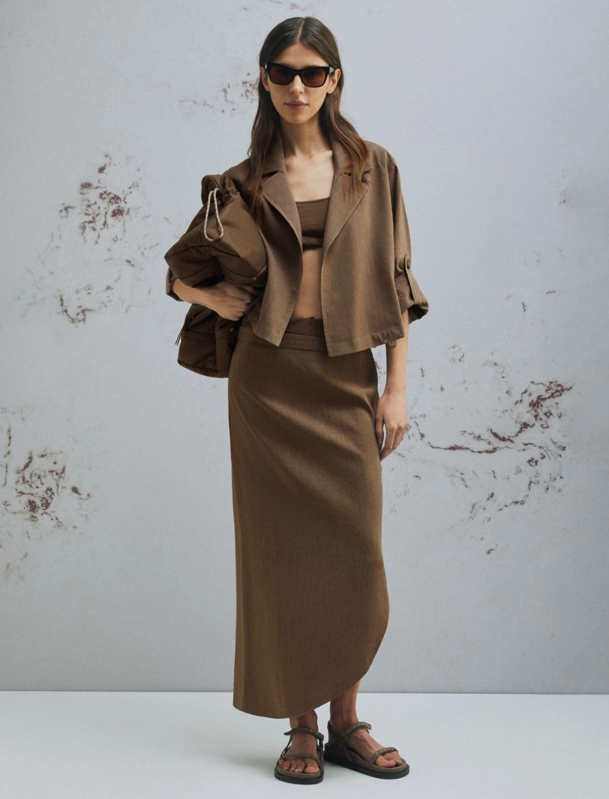 Укороченный жакет из вискозы и льна, цвет Коричневый