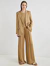 Ультраэлегантный жакет из ткани с эффектами мятости и заломов становится еще более современным и модным.  Для пошива жакета использовали ацетатную саржу. Модель прямого кроя застегивается на пуговицы в тон жакета. Карманы декорированы клапанами.